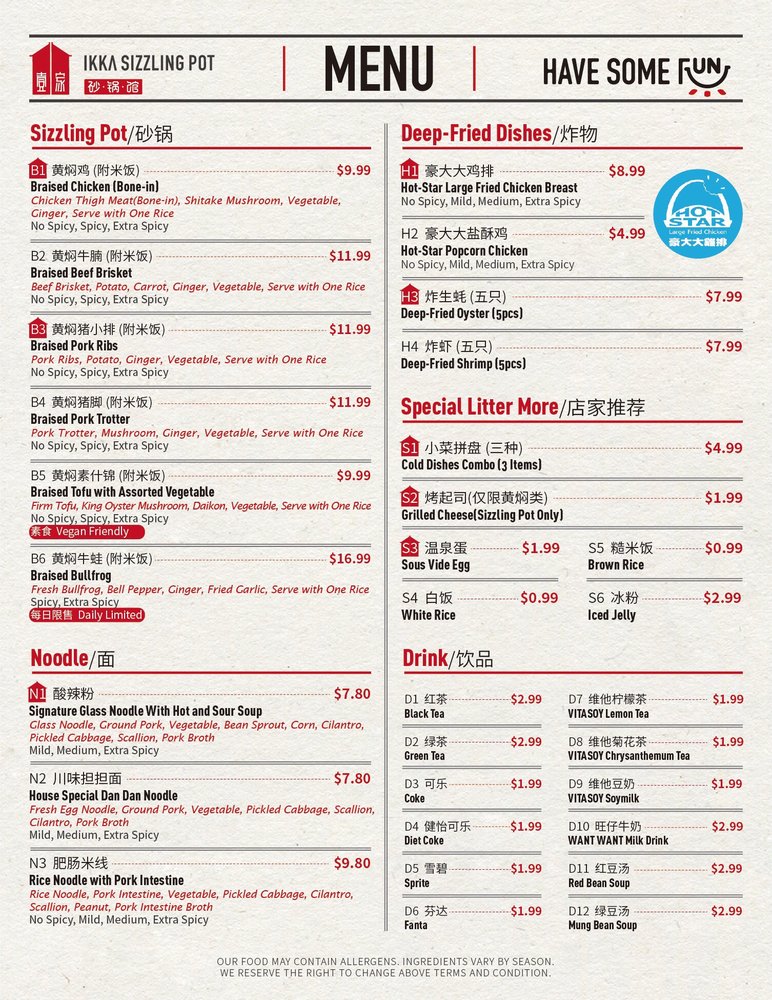 If you're craving for a new food experience in Arcadia, look no further than Ikka Sizzling Pot. Offering delivery, takeout, and reservations, this casual and trendy spot provides vegan and limited vegetarian options. The Asian and women-owned restaurant is known for its generous portions and flavorful dishes. Customers rave about the yellow chicken sizzling pot, cucumber salad, and passion tea. With a variety of main dish options like chicken, beef, pork, lamb, and tofu, Ikka Sizzling Pot delivers on taste and value. The cozy ambiance and attentive service make dining here a delightful experience. Order out if seating is limited or enjoy the outdoor seating if available. Don't miss out on the braised meats and vegetables, especially the signature Huang Men Ji (braised yellow chicken). Ikka Sizzling Pot is a hidden gem worth discovering in the heart of Arcadia.
